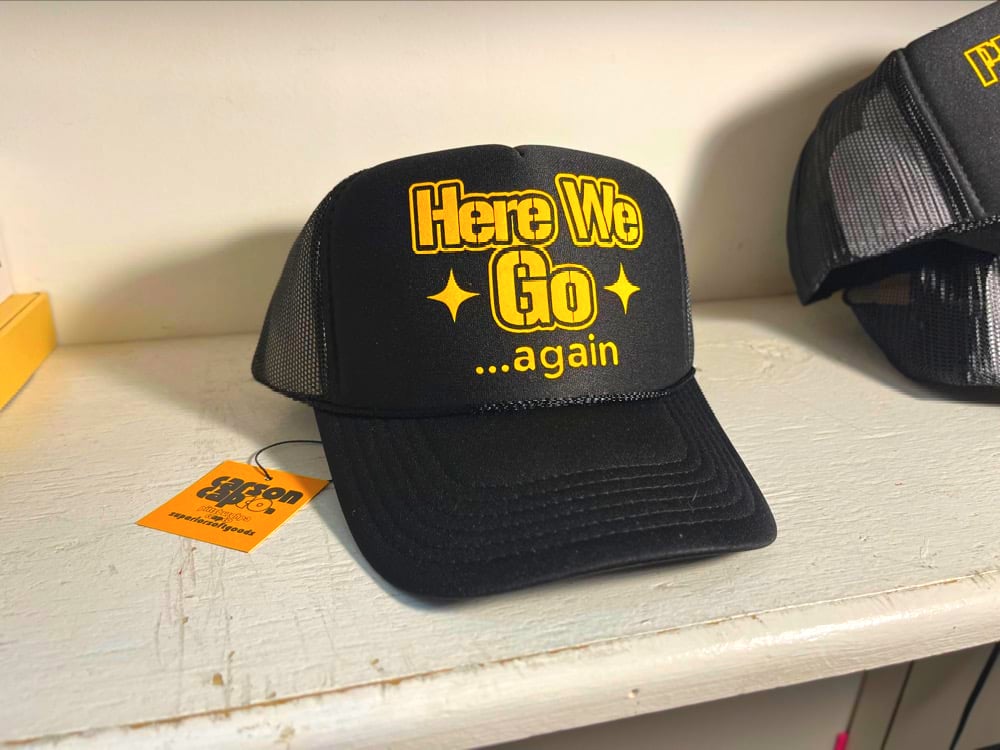 From the •PGH is for HATERS• series. Hand-pressed on Otto Cap classic adjustable foam/mesh trucker. Here We Go Stillers!